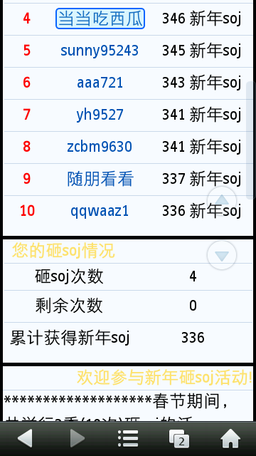 饭后砸了四把,呵呵,上榜了,真不好意思了各位,祝大家龙年龙马精神、阖家欢乐。