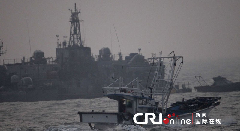 2010年12月19日,韩国军队士兵在延坪岛加强戒备巡逻,韩军舰也在附近海域巡逻。部分居民开始撤离延坪岛