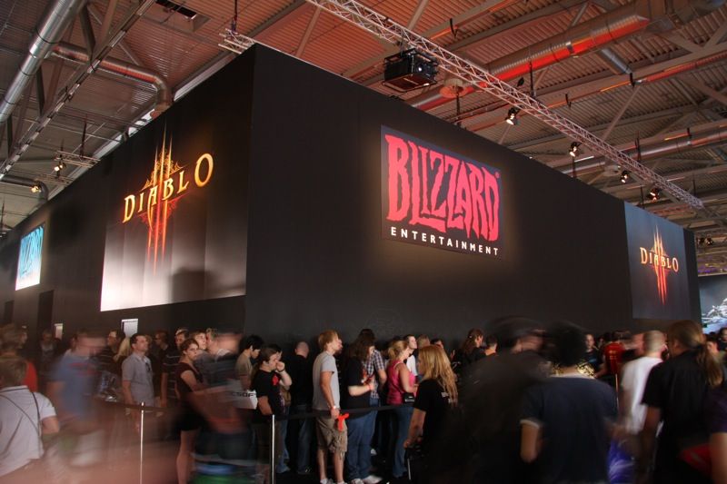 暴雪的展厅 3部分 星际2 暗黑3 和WOW十字军什么那个的资料片 由于每个玩家可以玩20分钟 所以从照片左边排到右边需要大约2小时