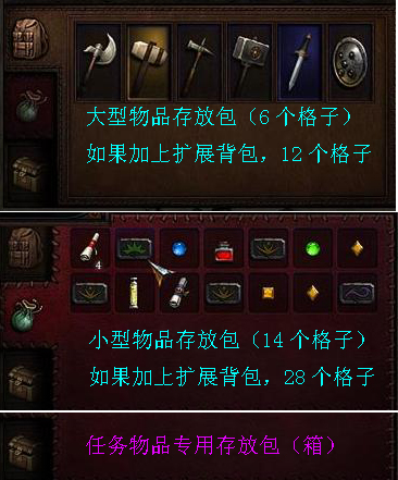 5.物品界面:小型物品,大型物品,任务物品使用不同的背包
