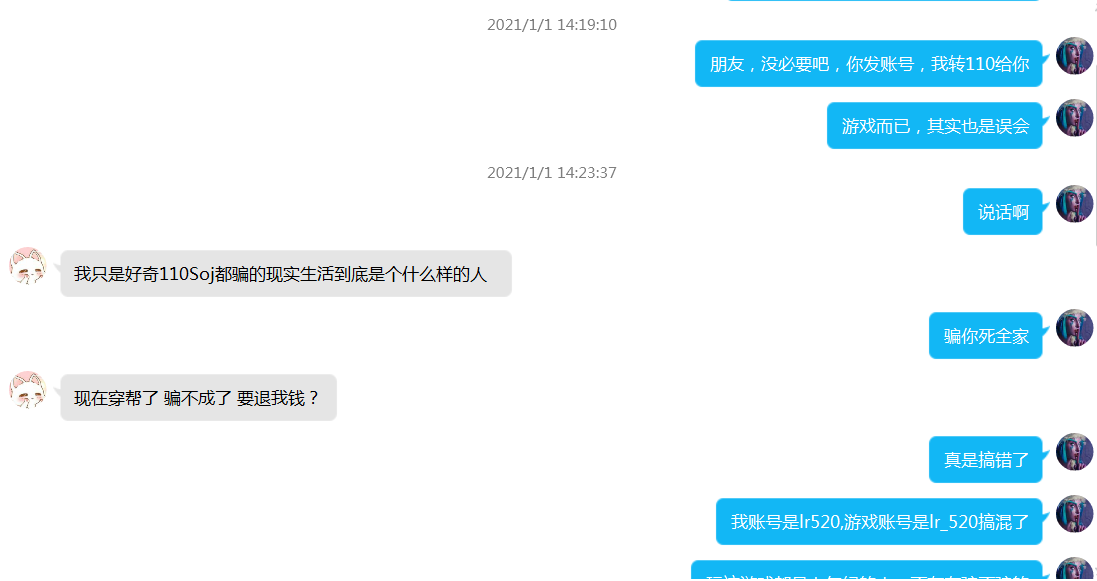 注意你的言辞,别以为你说是什么就是什么。要按照道理来,大家都可以来看,我只是叫双方出示证据,你截图告状有说明别人愿意退钱吗?好像你不是这么说的吧?而且骗钱的话就要用吧,那个账号16年到现在没使用过,骗钱放哪里看?