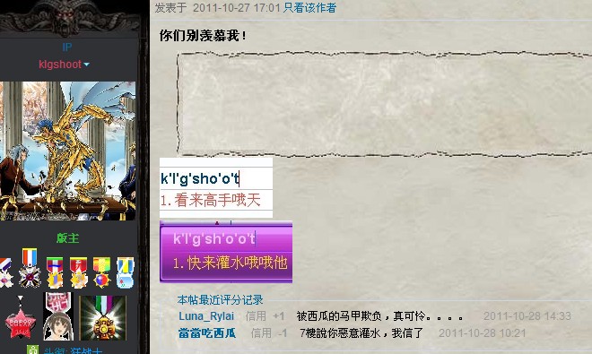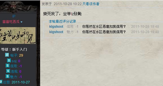 2、bbs id = klgshoot报复性扣分,口头警告一次