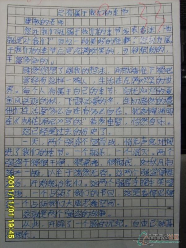 » 一位中学生的作文:两个强盗夺去我们的季节