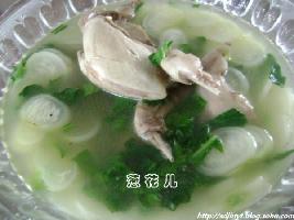 2.水萝卜切片,萝卜缨子切碎,炒锅上火放入清油把炒一下水萝卜稍炒一下(鹌鹑基本上没有什么油)然后把煮好的汤倒入开锅后把萝卜缨子撒入开锅后装盆即成。