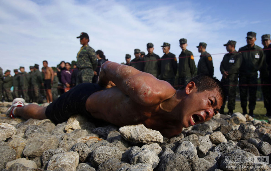 2011年1月19日,台湾高雄,台湾海军特种兵进行魔鬼训练。