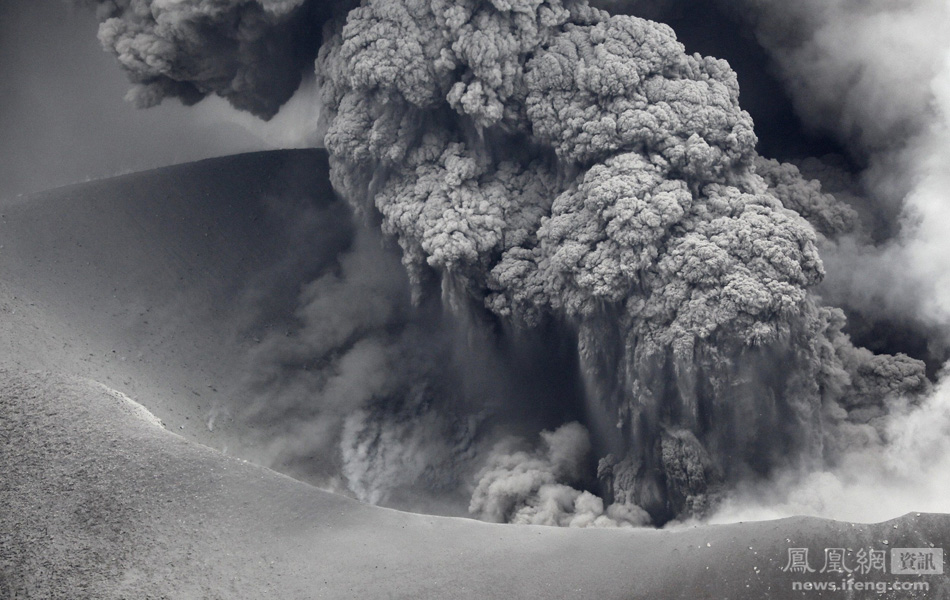 2011年1月28日,从鸟瞰图看出,位于宫崎市与鹿儿岛郡之间日本新燃岳火山爆发。