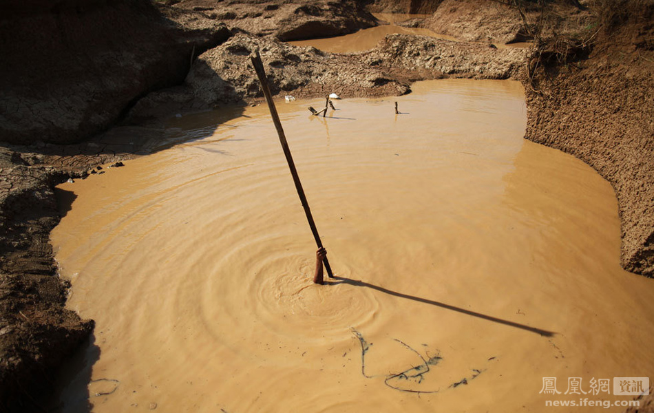2011年2月17日,泰国曼谷北部的Panompa,一名淘金男子潜入水下安装抽水机。当地村民在没有安全措施的情况下 ...