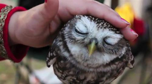 猫头鹰其实是种很萌的生物。你瞧被主人抚摸时露出来的那小表情,多萌。