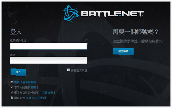 打开台服战网登录页面( https://tw.battle.net/account/management/ ),点右边的“建立账号”按钮