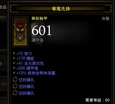 亚服最好的生存向胸甲 601护甲 178体能 72智力 41全元素抗性 外加3孔!!!!!!!!