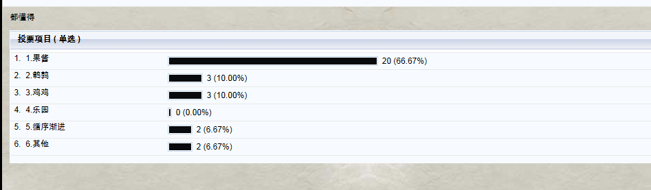 没有悬念,其他的几票都是酱妹的马甲投的