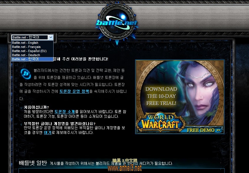 今天本来想去BN看下消息,打开battle.net,跳出韩文,我彻底郁闷了,本来英文就烂了,韩文就完全无法。为什么会直接跳到韩文呢?我估计是亚洲IP都自动这样跳。中国这样大的市场被忽视,很可能是WOW的wlk在中国受挫直接导致。加上中国的盗版市场。无法。