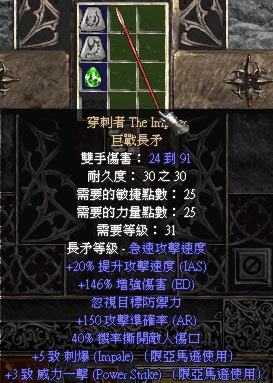 ivl = 50 此长杆武器总是有野蛮的(Savage)前缀(66-80% 伤害加强)同样也有获得后缀的机率