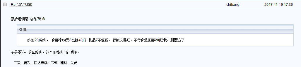 3.取消交易的理由: 催促的短消息也已经阅读超过20小时,论坛长时间在线多次,不发货也不回短消息。涉及金额340soj。此玩家在他的出售帖子中也曾对别人延迟发货。