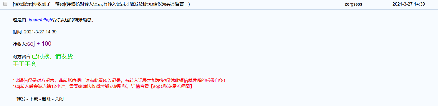 3.取消交易的理由 是我看错区了。我是1.13老区,对方是2018战网的。我发信息让返回SOJ,卖家今天还上线了没有回信息没有返还SOJ