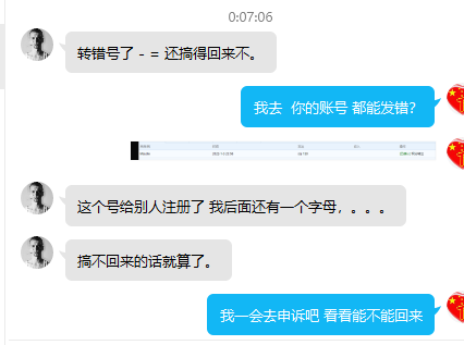 发现转错和卖家的沟通