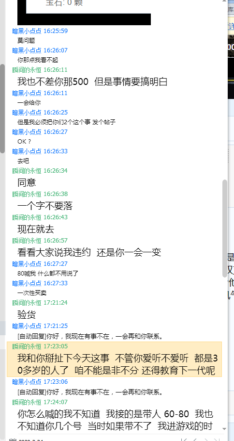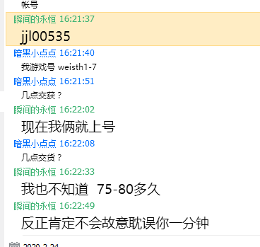 再说效率  16:23分他给的我号,刚到75的  我还和他掰扯半天  16:30才开始上他号打 我17:21 到80级让他验货  4分多一次KB速度怎么了?