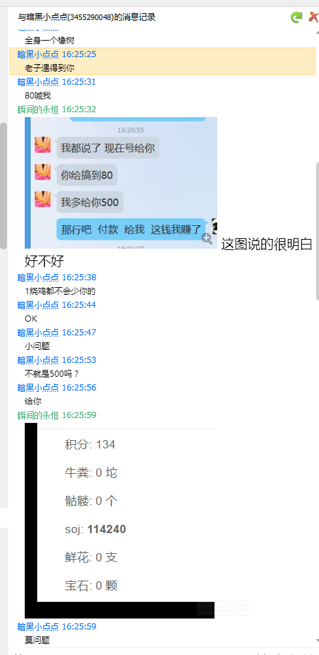 后面至于没有按约定的给你SOJ确实是号主不对   他是我战队的我是队长 我跟你说个对不起      这确实是他不对  我把剩下的SOJ给你转过去。