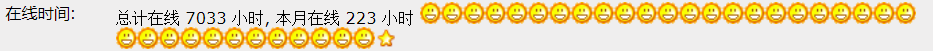 论坛在线时间=多年来基本每天长时间在线管理论坛,每月在线时间都在前几名,以本月到今天现在的为例在线223小时排第4名(GM在线361小时)