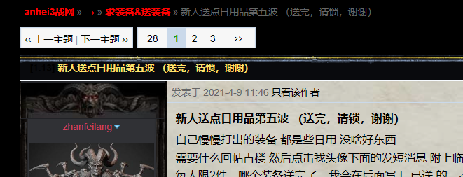 还有点没说明白,第一楼那个账号zhanfeilang据我理解应该就是单飞所说的坑人的账号,光顾骂架了,稀里糊涂至今不明白前因后果,他那个送装备的截图我理解是不是那个坑人的假借单飞名义送?我不明白为啥好人我不是自己做,还要假借他的名字。。。太多事情想不通