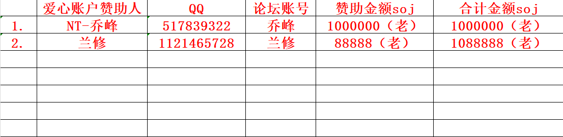 兰修、乔峰共同赞助文明诚信公益活动爱心账户合计收入:1088888soj(老)