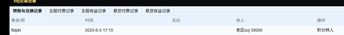 支出老区soj 160000(其中15000由小号huanbao286在2025-6-3 19:48转入)