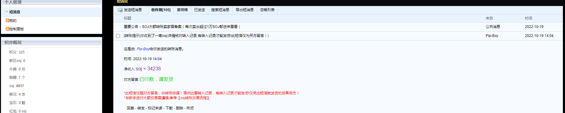 » 大额交易卖家备案帖(卖出超过5万SOJ或1~5万高频的需回帖)
