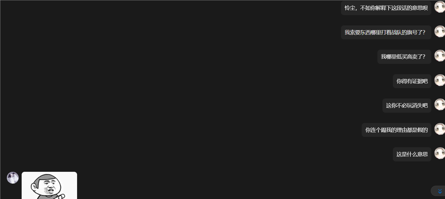 至于怜尘所说的,战队的事,我哪里有打着战队旗号到处要东西了?!战队群里我仅仅是低价买了些货物而已,实际并没有赚取多少soj