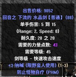 » 这个回音+3呐喊有市场吗??lv88 名字:回音之 下流的 水晶剑