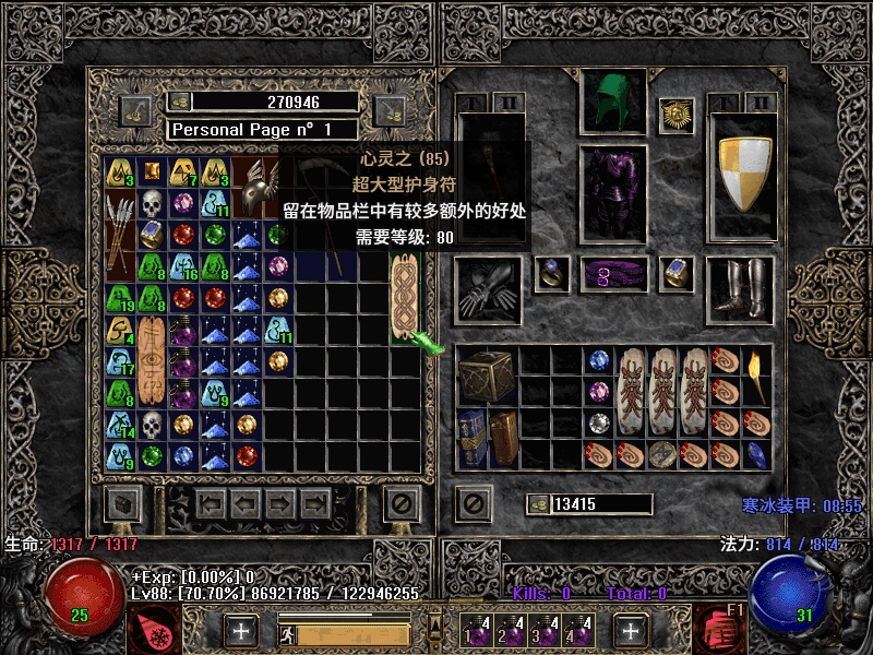 他家帮我看看这个暗金超大型护身符怎么显示不了属性。(暗黑1.13C)