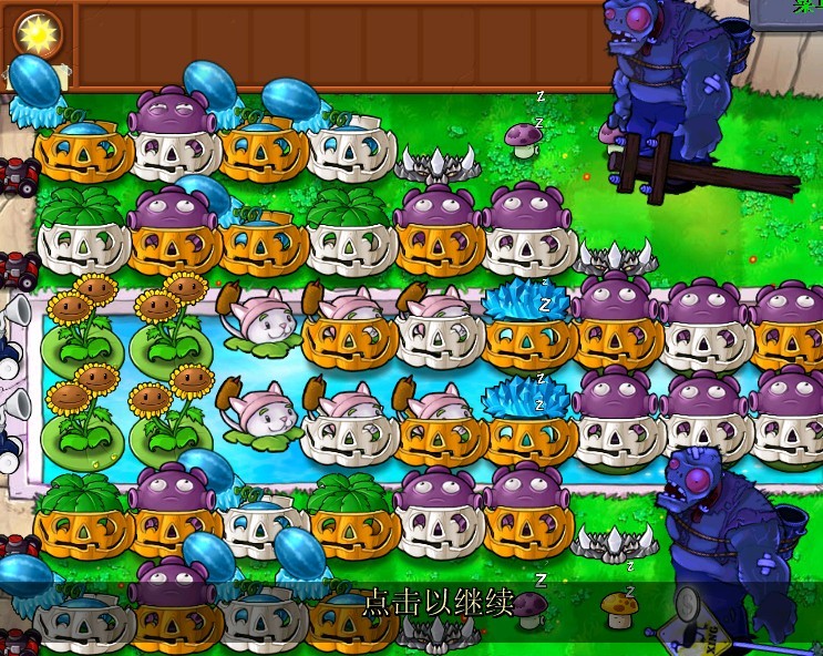 此阵的话,看上去比较正统,攻防一体,但总觉得没有玉米炮,后期撑不住,单靠冰菇行么?