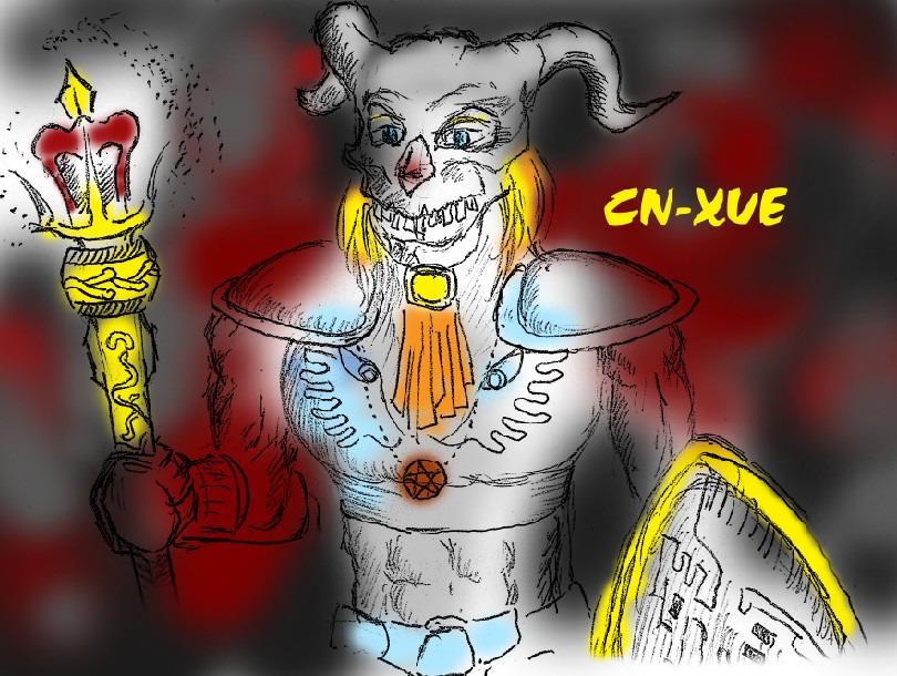 使用了比较毒辣的色彩,定制者要求表现戴着骷髅头盔的圣骑士,但是也要正义。。。所以我选择了这样的配色