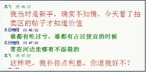我是真的伤心了,在群里好心人告诉我可以退冬日的交易之后,我去看了冬日的“格里风事件”的帖子,他很理直气壮的说可以退,却在我QQ交涉时候理直气壮的说什么:常在河边走,怎能不湿鞋?。