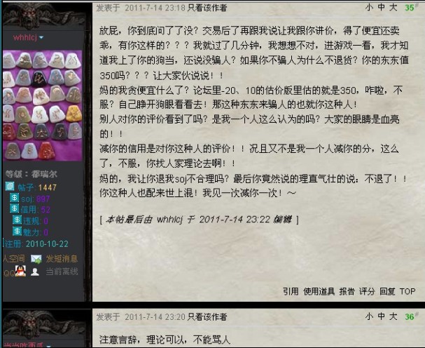 交易区的版规何在?知法犯法罪加一等难道不是说的冬日?难道冬日凌驾于版规之上?文明交易的精髓何在?公然威胁说见一次减一次就没人管了?暗黑里的华尔街难道徒有虚名?难道战网就是这样的人在常驻论坛?