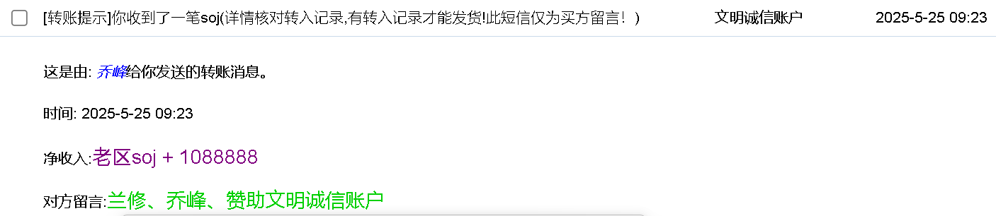 欢迎大家共同监督该账户,谢谢!今年各位赞助人的soj,还在本人乔峰的账户上,所以,今年的soj发放,还是由乔峰的账户发放并做账公布论坛。文明诚信公益活动爱心账户只是以后文明诚信公益活动的启动金及备用金。