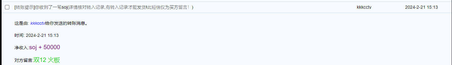 自己2个账号 购买东西SOJ不够时 需要转一起给自己买东西 也需要备注吗