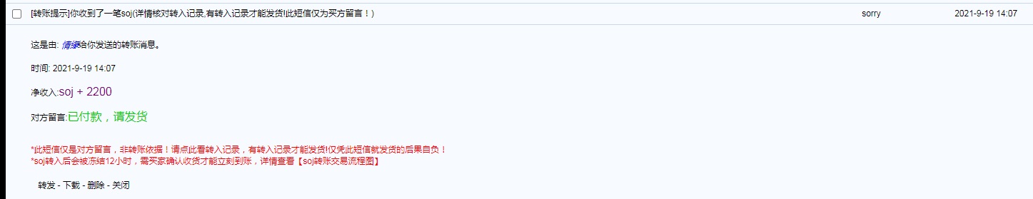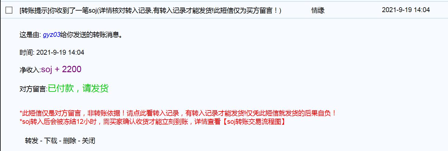我在20服务器购买装备,转账后发现和交易方“情缘”不是一个服务器,然后“情缘”退款错退给了“sorry”,“sorry”是个不活跃的账号,申请从“sorry”退给我2200soj。
