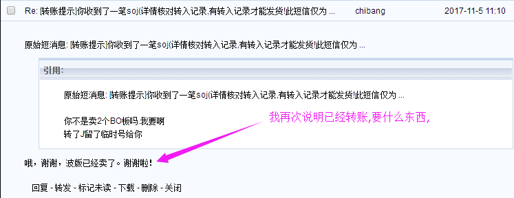 看他帖子卖的东西我直接转了J,并告诉他要的东西和临时号,他短信问我什么情况.