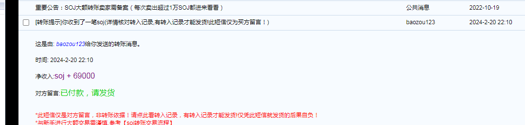 » 大额交易卖家备案帖(卖出超过5万SOJ或1~5万高频的需回帖)