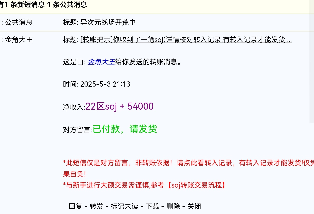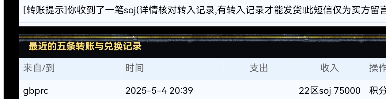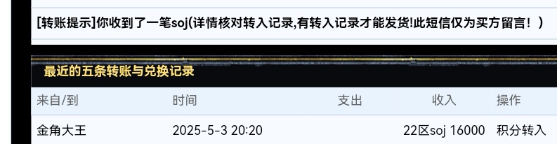 对方集市挂不了东西,已经给了一个25,以后再给对方19700soj