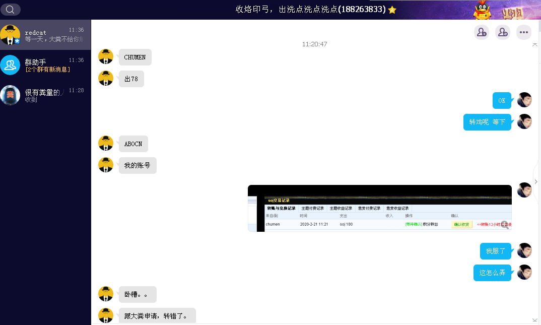 同时卖家应该是两个群中的某人小号,专做诈骗使用,望大粪大大严格处理。i谢谢。附图。